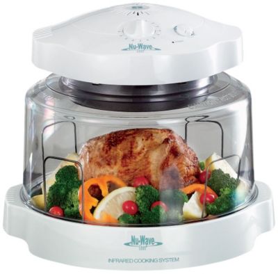 This countertop NuWave Oven is the fast easy healthy way to cook! Bake broil fry roast steam dehydrate and barbecue in less time without fats or oils preheating or defrosting. Patented 3way system combines infrared radiant heat that cooks food from the inside out for moist results conduction heat for crisp browning and convection technology that circulates heat for faster more even cooking You can actually watch the food cook through the clear lightweight dome Work at the height of your countertop rather than bending down into a hot oven all the time Cooks food quickly and thoroughly leaving meats not only moist and succulent but crispy browned also Holds up to a 12 lb. turkey1" rack converts to a 4" rack for multilayer cooking Includes cooking chart and recipes Removable parts are dishwasher safe Approx. 151/2"L x 141/2"W x 141/2"HLimited warranty